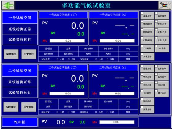 1、能對所有試驗室內的試驗溫度、濕度、時間、CO2氣體濃度、SO2氣體濃度、NOx氣體濃度、淋雨周期進行實時顯示。